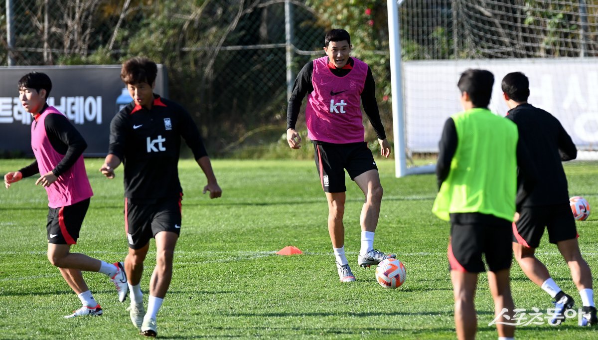 한국축구국가대표팀이 10월 A매치 평가전을 앞두고 10일 경기도 파주 축구국가대표트레이닝센터(NFC)에서 훈련 및 팬 오픈트레이닝을 가졌다. 축구대표팀 김민재가 훈련을 펼치고 있다.