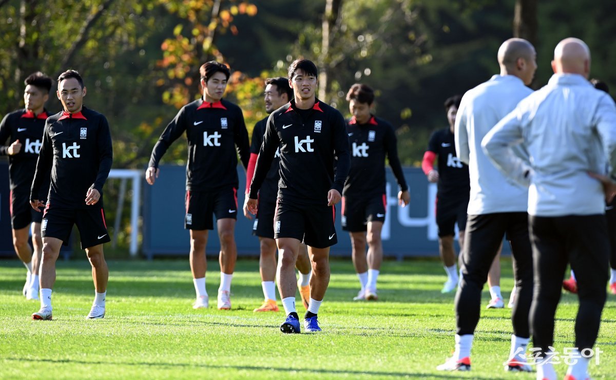 한국축구국가대표팀이 10월 A매치 평가전을 앞두고 10일 경기도 파주 축구국가대표트레이닝센터(NFC)에서 훈련 및 팬 오픈트레이닝을 가졌다. 축구대표팀 황희찬이 스트레칭 훈련을 마친 후 이동하고 있다.