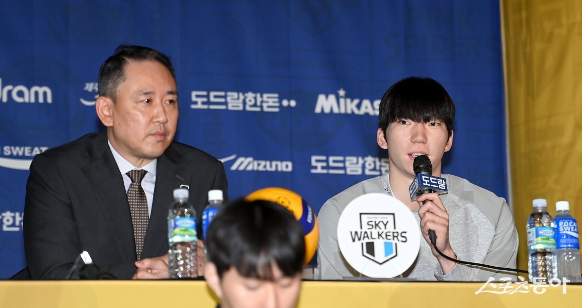 11일 서울 강남구 청담 리베라 호텔에서 열린 ‘도드람 2023~2024 V-리그’ 남자부 미디어데이에서 현대캐피탈 허수봉이 출사표를 말하고 있다.