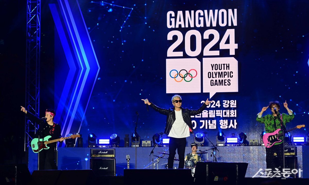 ‘2024 강원 동계청소년올림픽 대회 G-100 기념 행사’가 11일 서울광장에서 열렸다. 밴드 크라잉넛이 사전 축하공연을 하고 있다.