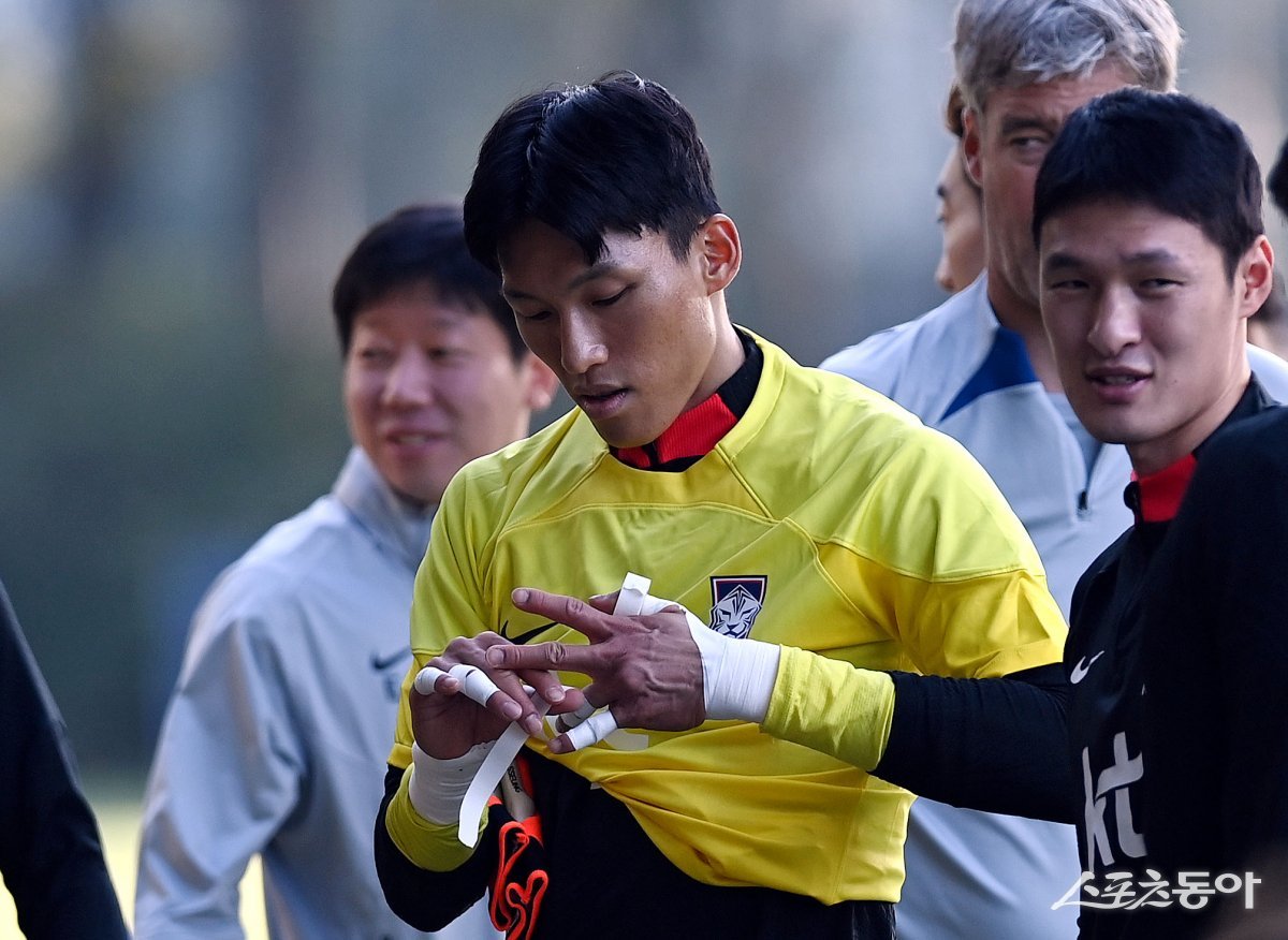 한국축구국가대표팀이 10월 A매치 튀니지와 평가전을 앞두고 12일 경기도 파주 축구국가대표트레이닝센터(NFC)에서 공식 기자회견 및 훈련을 가졌다. 축구대표팀 김승규가 훈련을 준비하고 있다.