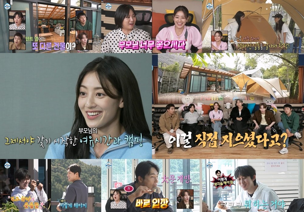 삼겹살을 위한 솥뚜껑은 물론 각종 캠핑 장비부터 감성 소품까지, 없는 것이 없는 지효네 캠핑 하우스 모습에 모두가 입을 다물지 못한 가운데, 박나래는 한 곳을 보고 “부모님 너무 좋으시네요”라며 흐뭇한 표정을 짓는다.