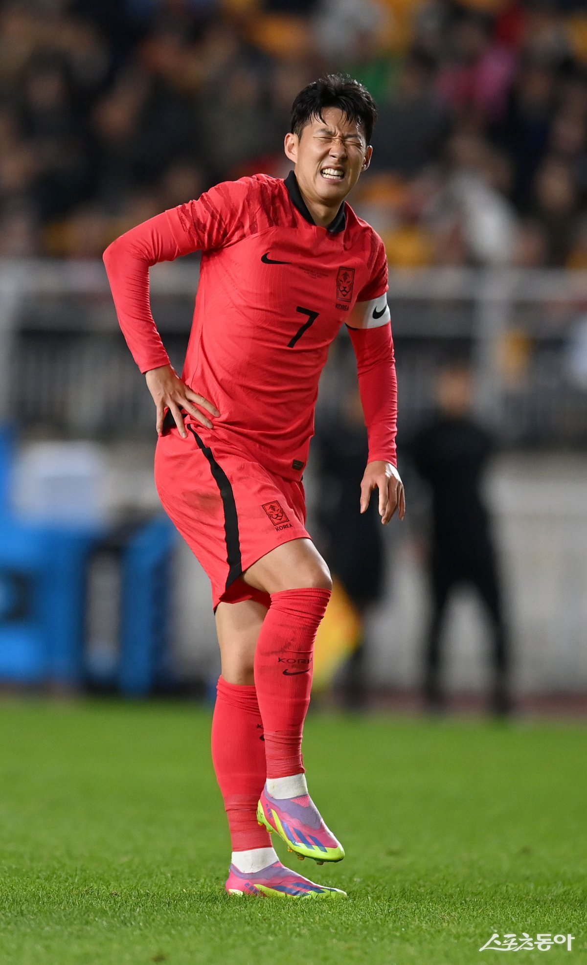 대한민국 축구대표팀이 17일 수원월드컵경기장에서 베트남과 평가전을 가졌다. 한국 손흥민이 고통스러워하고있다.