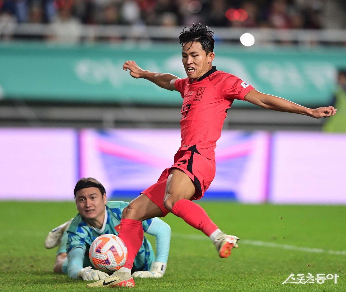 17일 수원월드컵경기장에서 열린 하나은행 초정 국가대표 친선경기 한국과 베트남의 경기에서 한국 정우영이 여섯 번째 골을 터뜨리고 있다.