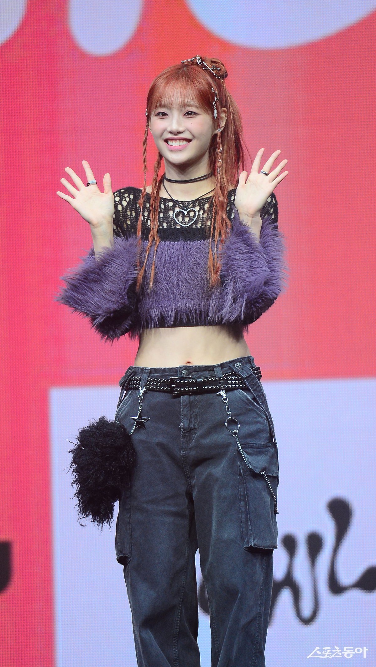 가수 츄(CHUU)가 18일 서울 광진구 예스24 라이브홀에서 첫 번째 미니 앨범 ‘Howl’ 발매 쇼케이스에서 포토타임을 갖고 있다.
