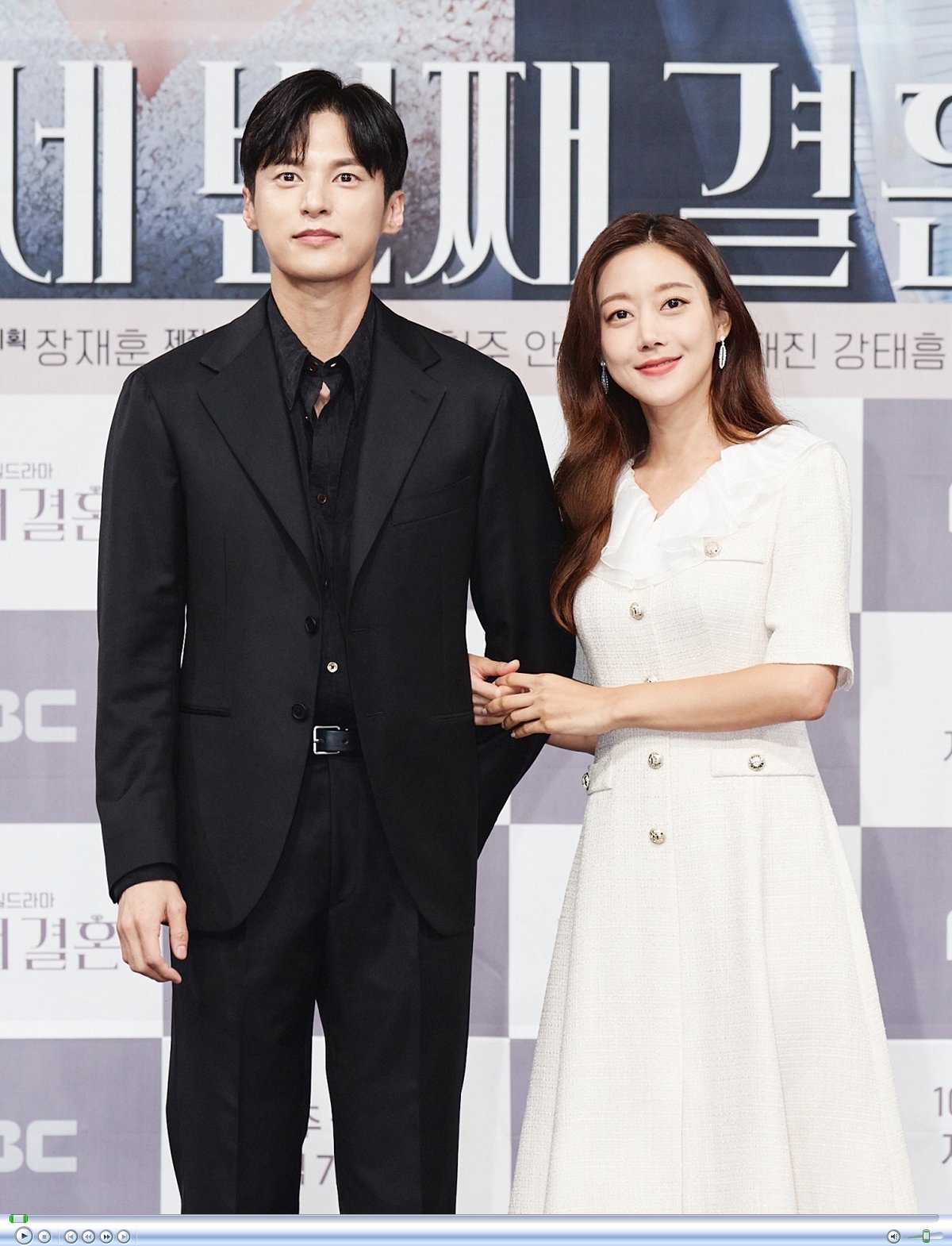19일 오후 2시 서울 마포구 MBC 골든마우스홀에서 진행된 MBC 새 일일드라마 ‘세 번째 결혼’ 제작발표회에서 포즈를 취하고 있다. 이날 행사에는 오승아, 윤선우, 윤해영, 전노민, 오세영, 문지후 그리고 이재진 감독이 참석했다.