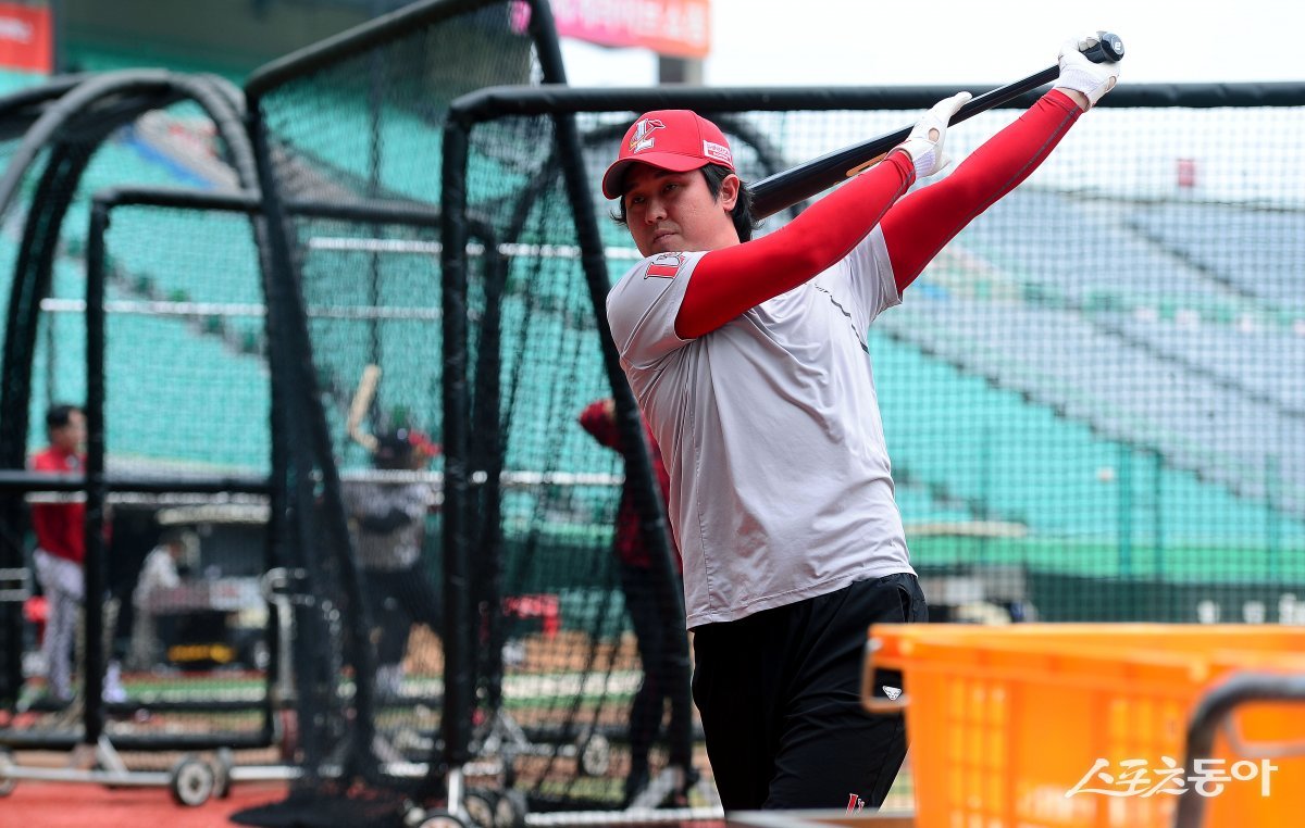 19일 인천 SSG 랜더스필드에서 SSG 랜더스가 준플레이오프를 앞두고 훈련을 가졌다. SSG 최정이 배팅 훈련을 하고 있다.