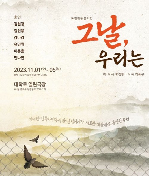 통일염원뮤지컬 ‘그날, 우리는’이 11월 1~5일 대학로 열린극장에서 공연한다.