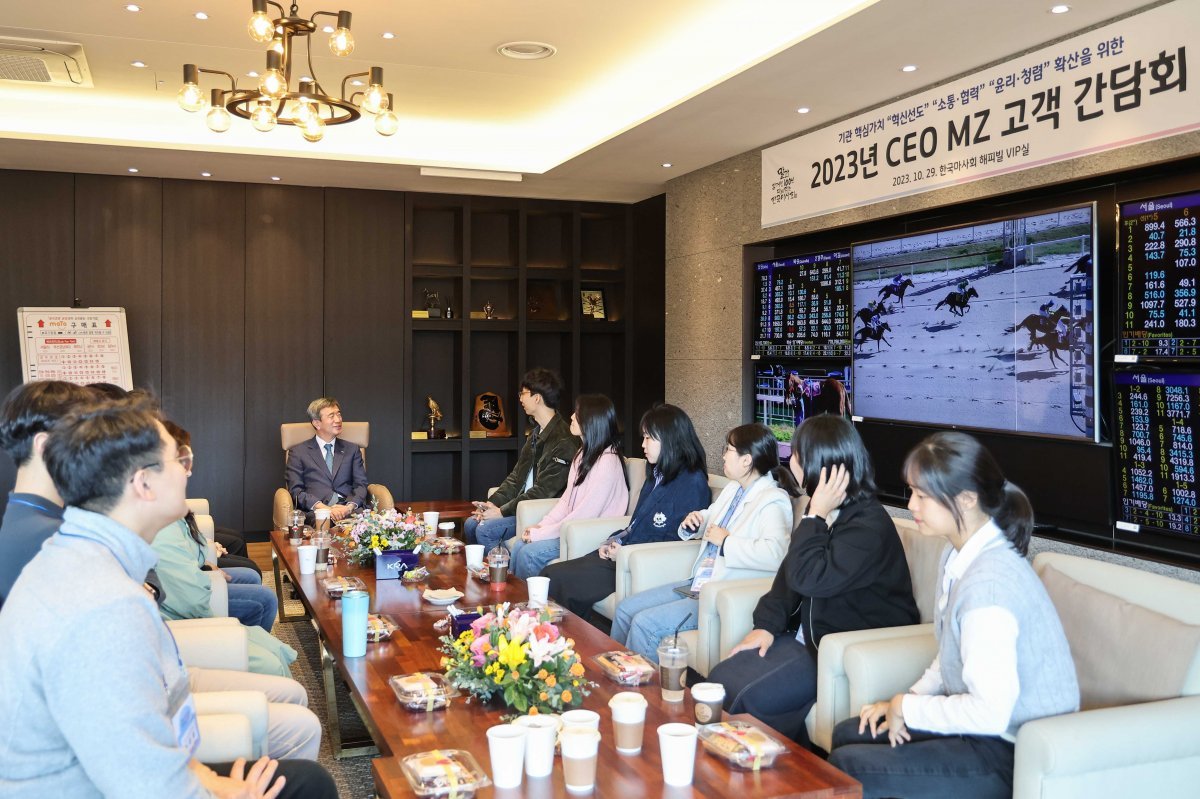 정기환 한국마사회은 29일 2030 고객 12명을 렛츠런파크 서울로 초청해 간담회를 가졌다.온라인 발매 앞두고 미래잠재고객 확보 소통·협력 행보