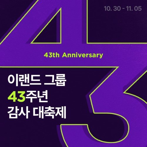 이랜드몰이 11월 5일까지 이랜드 창립 43주년 기념 감사 대축제를 연다.