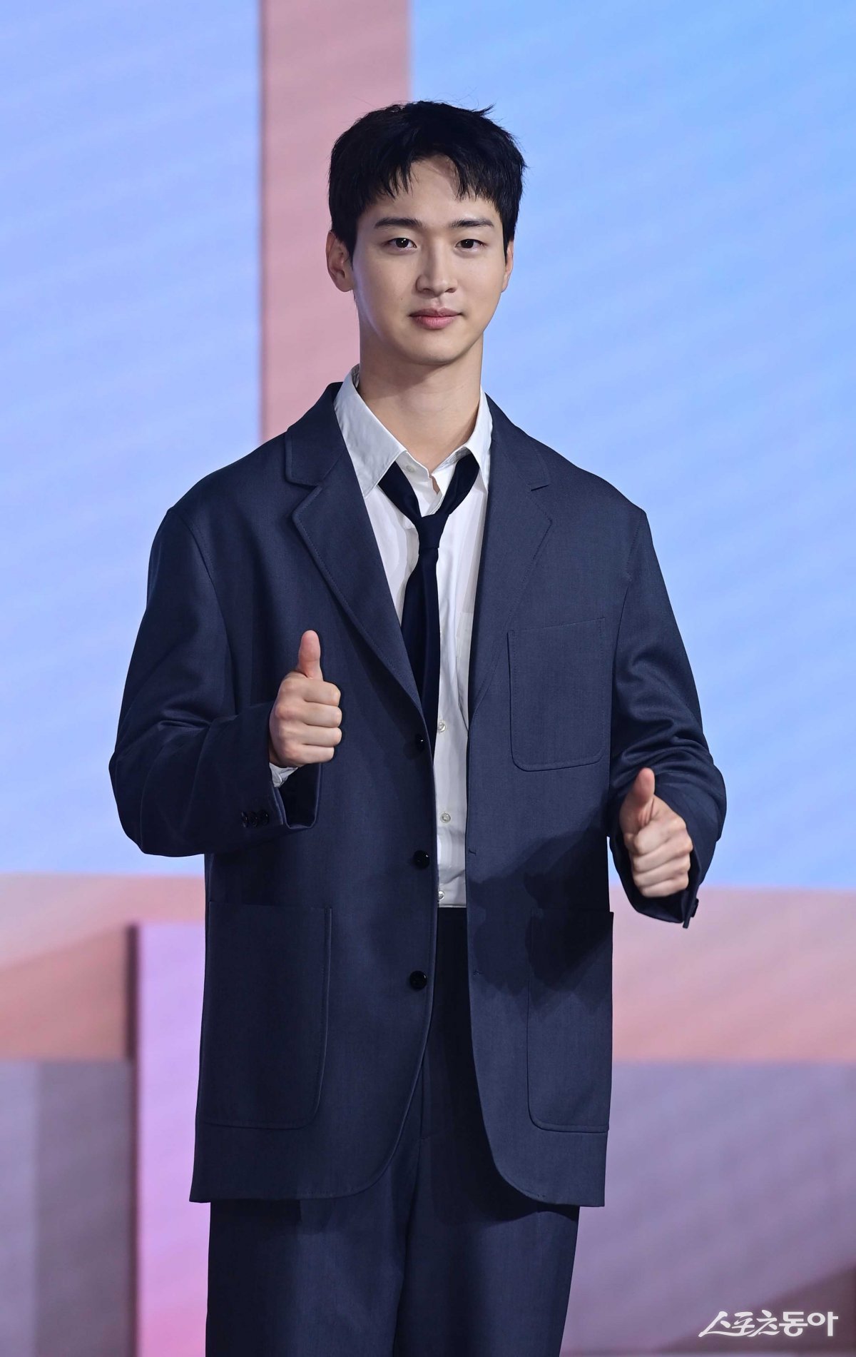 배우 장동윤이 1일 서울 종로구 JW메리어트 동대문스퀘어서울에서 열린 넷플릭스 ‘정신병동에도 아침이 와요’ 제작발표회에서 포즈를 취하고 있다.