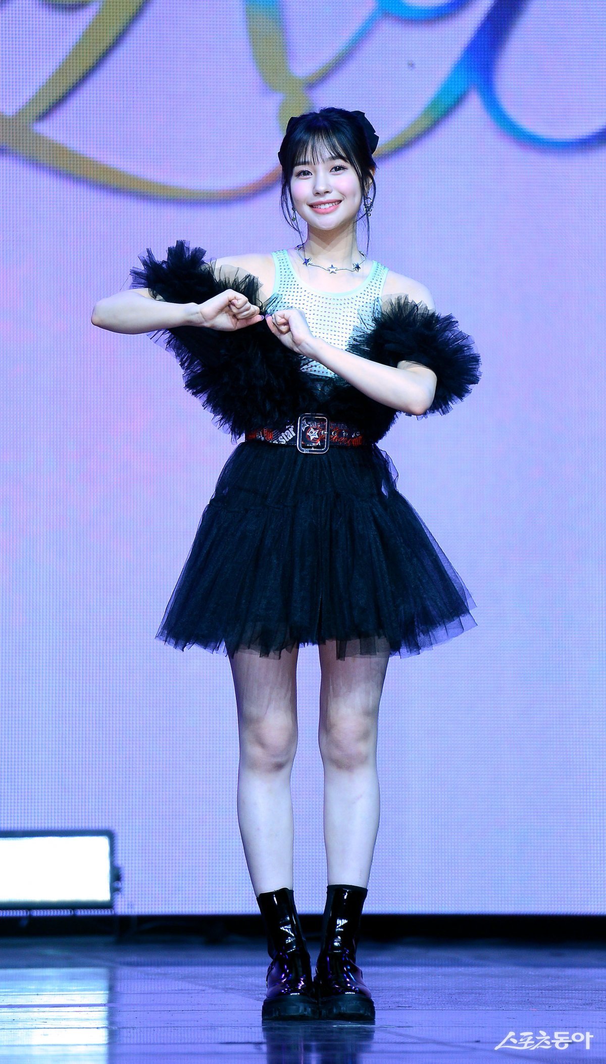 그룹 위클리(Weeekly) 지한이 1일 서울 용산구 블루스퀘어 마스터카드홀에서 열린 5번째 미니앨범 ‘컬러라이즈’(ColoRise)‘ 발매 쇼케이스에서 포토타임을 갖고 있다.