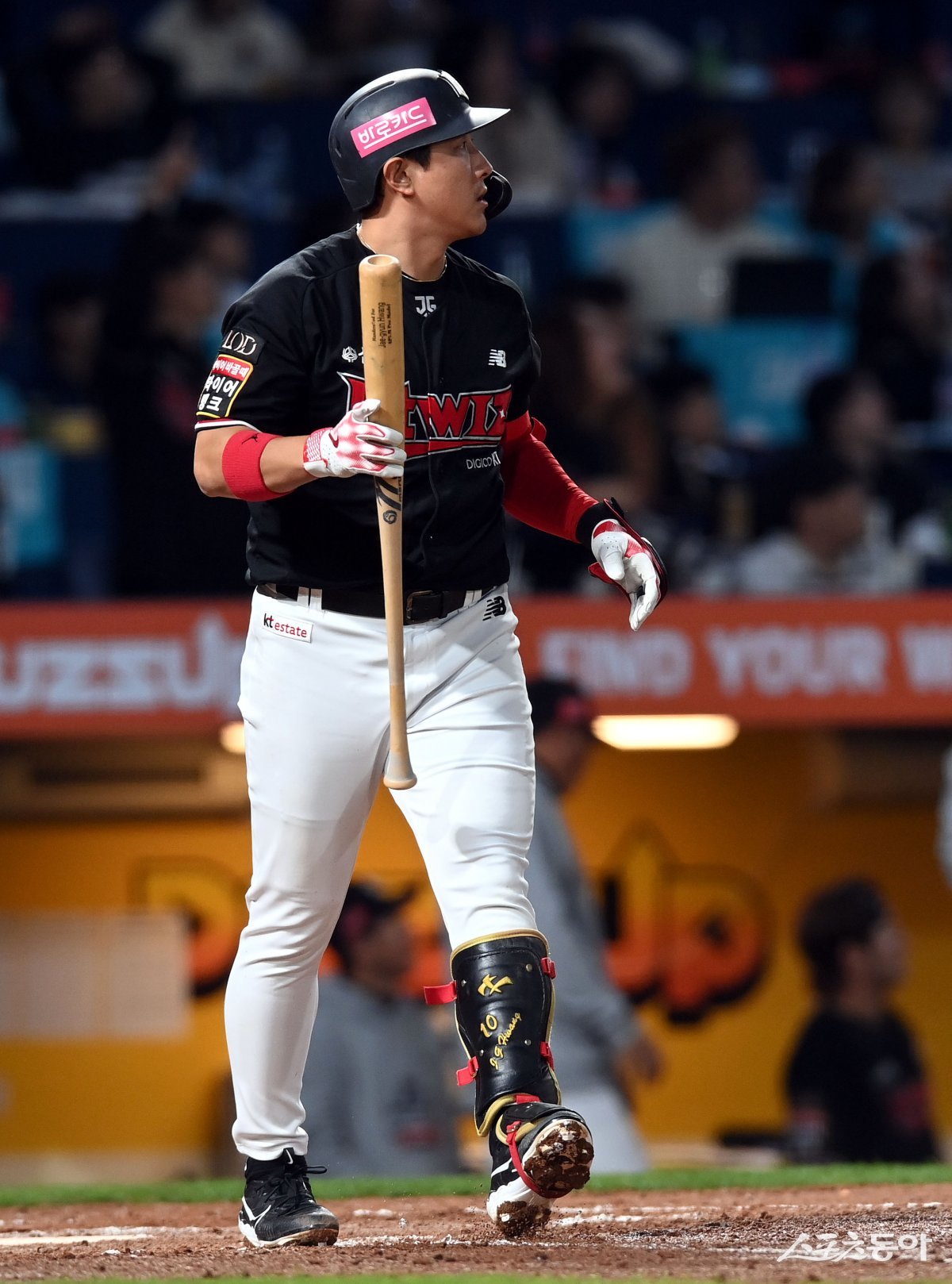 3일 창원NC파크에서 ‘2023 신한은행 SOL KBO리그’ NC 다이노스와 kt 위즈의 플레이오프 4차전 경기가 열렸다. 4회초 무사에서 kt 황재균이 솔로 홈런을 쏘아 올리고 있다.