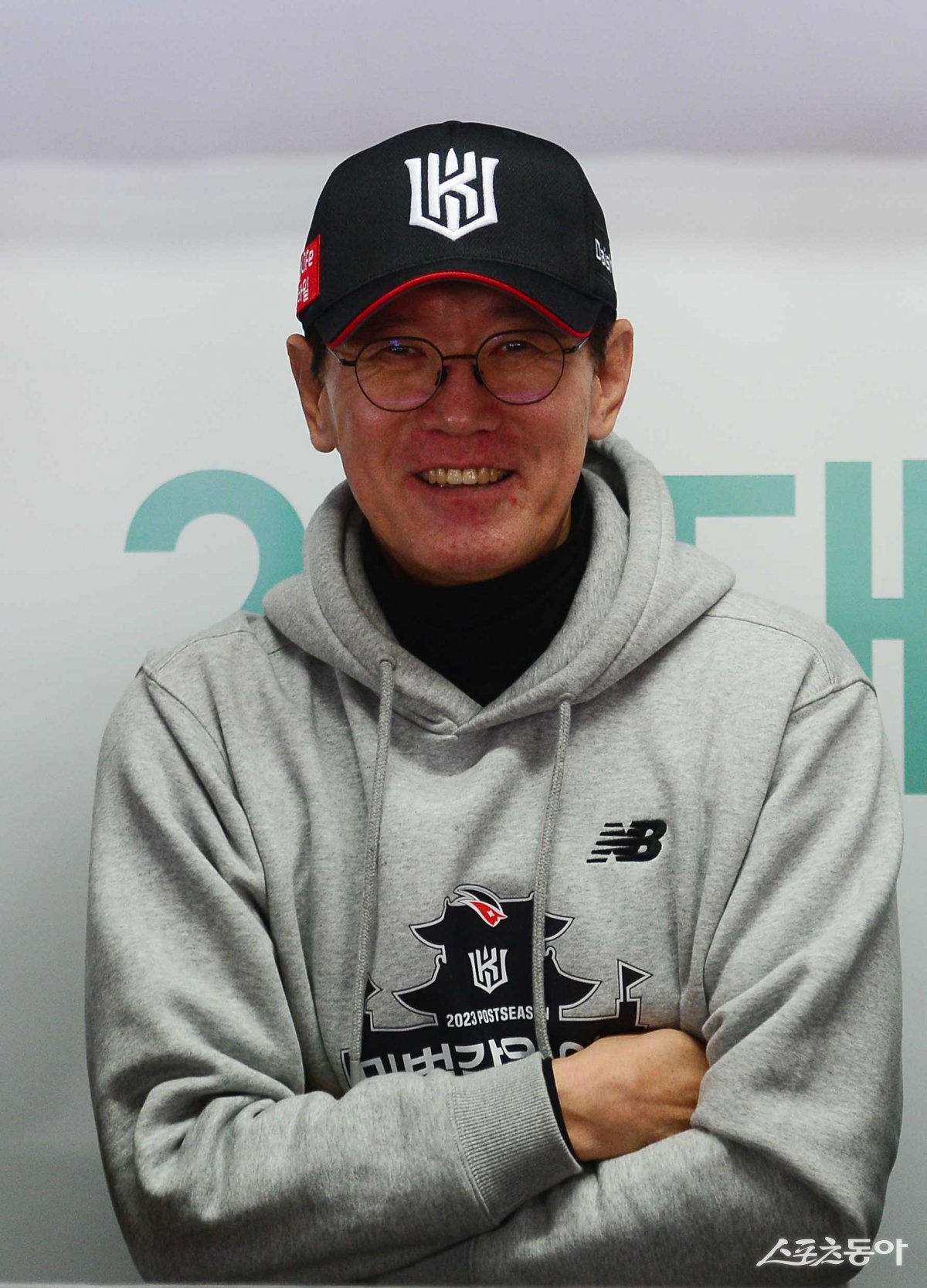 5일 경기도 수원KT위즈파크에서 열린 ‘2023 KBO 포스트시즌’ KT 위즈와 NC 다이노스의 플레이오프 5차전 경기에 앞서 KT 이강철 감독이 취재진과 인터뷰를 하고 있다. 수원 | 주현희 기자 teth1147@donga.com