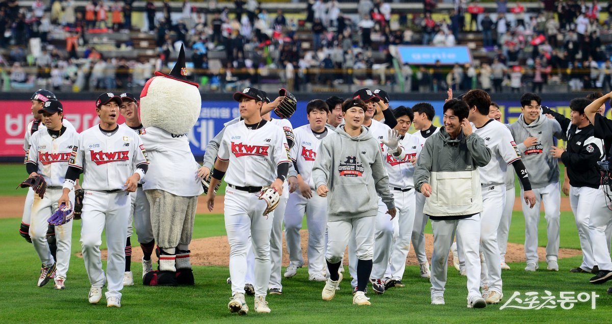 5일 수원KT위즈파크에서 ‘2023 KBO 포스트시즌’ KT 위즈와 NC 다이노스의 플레이오프 5차전 경기가 열렸다. KT가 3-2 역전승을 거두며 PO 전적 3승 2패로 한국시리즈 진출을 확정지었다.