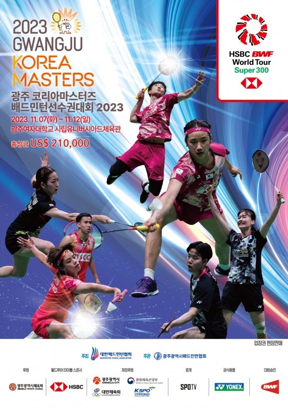 ‘2023 광주 코리아마스터즈국제배드민턴선수권대회’가 7일부터 12일까지 광주 광주여대 유니버시아드체육관에서 개최된다.이번 대회에는 27개국 279명의 선수들이 개인전 5종목(남자 단식, 여자 단식, 남자 복식, 여자 복식, 혼합 복식)에서 자웅을 겨룬다.