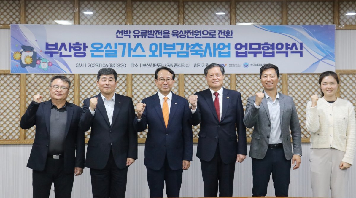 부산항만공사(BPA, 사장 강준석)가 6일 BPA 본사에서 한국해양수산연수원과 온실가스 외부감축사업을 위한 업무협약을 체결했다고 밝혔다.부두 내 온실가스 줄여 배출권 확보