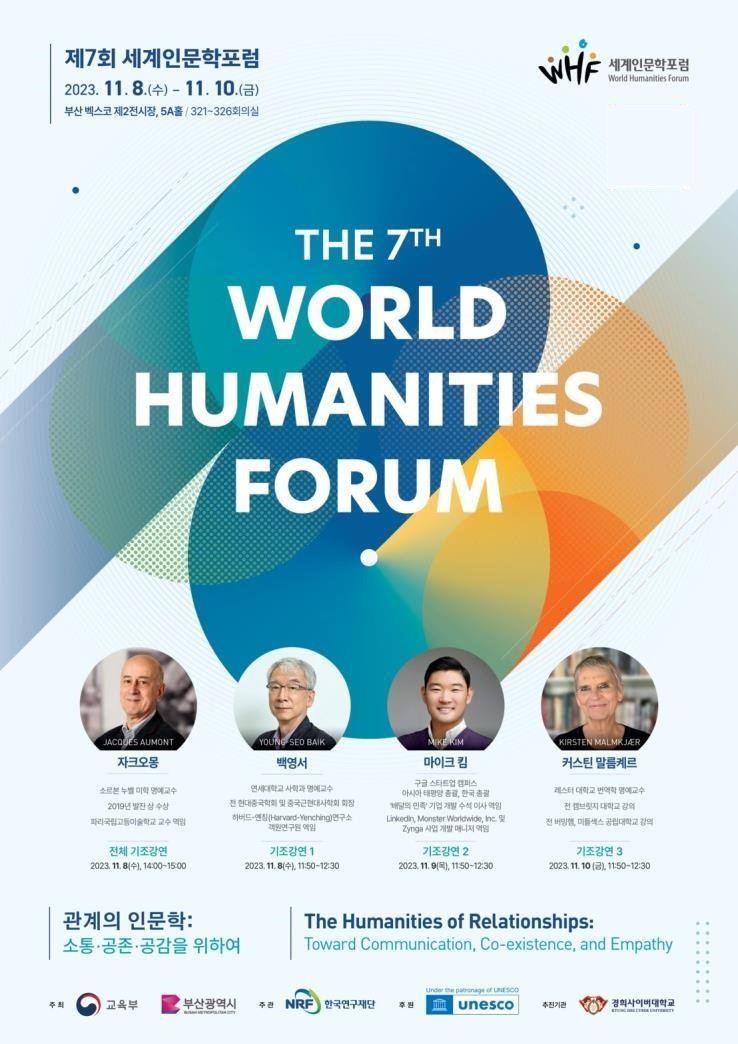 ‘세계인문학포럼(WHF)’은 교육부와 부산시가 공동 주최하고 한국연구재단이 주관하며 유네스코가 후원하는 세계적 인문 학술행사다.