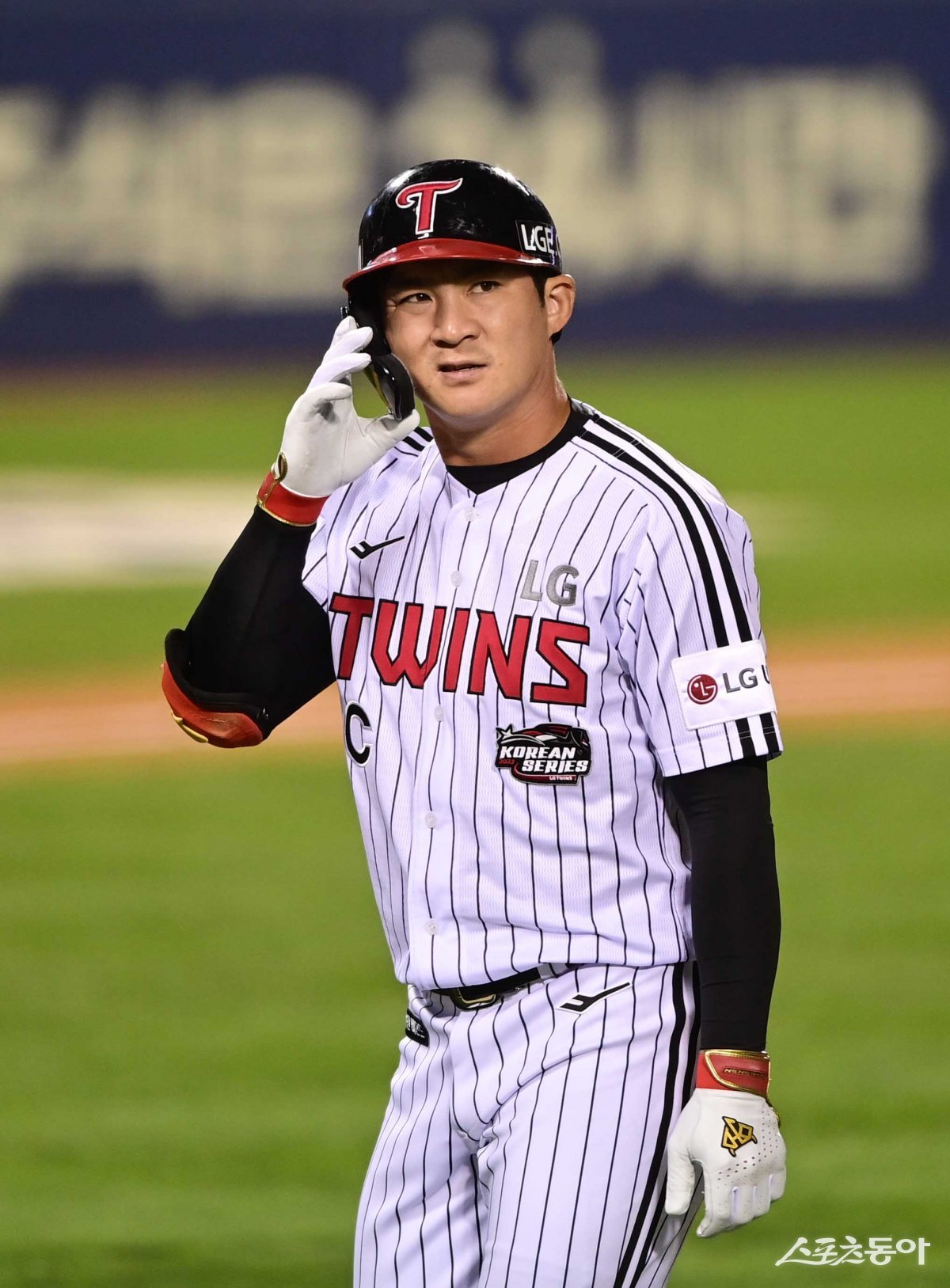 8일 서울 잠실야구장에서 열린 ‘2023 KBO 포스트시즌’ LG 트윈스와 KT 위즈의 한국시리즈 2차전 경기에서 1회말 2사 1, 3루 LG 오지환이 땅볼 아웃을 당한 후 아쉬워하고 있다.