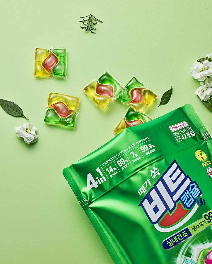 ‘냄새도 때다’라는 생각에서 기획한 제품으로, 32년간 쌓아온 비트만의 기술력으로 강력한 세척력과 소취력을 구현했다. 강력한 소취 성분 배합 기술을 적용해 실내 건조 시 발생하는 빨래 쉰내를 99% 제거하며, 고농축 캡슐세제에 담긴 7중 파워효소가 섬유 깊숙이 침투해 냄새 원인 물질(단백질·피지오염)까지 케어해준다. 아로마틱 그린 플로랄 향이 세탁 후 기분 좋은 상쾌함을 선사한다.