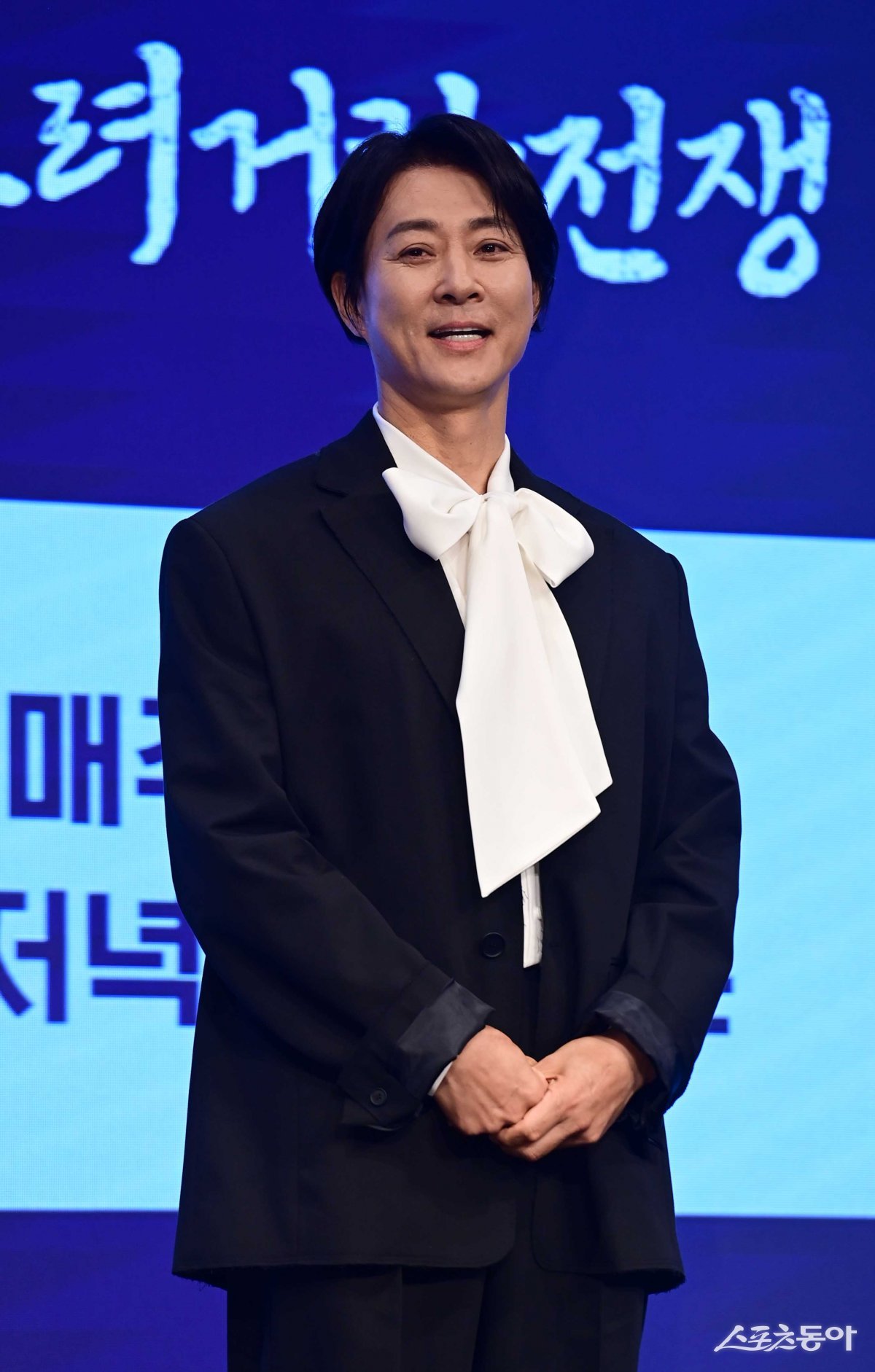 배우 최수종이 9일 서울 구로구 신도림동 더세인트에서 열린 KBS 2TV 공영방송 50주년 특별기획 대하드라마 ‘고려 거란 전쟁’ 제작발표회에서 포즈를 취하고 있다.