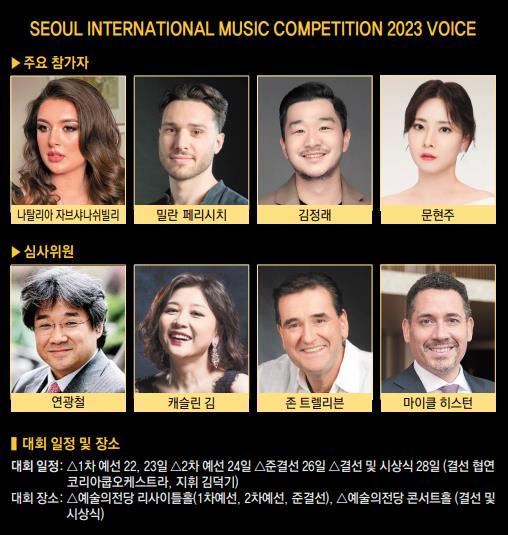벨기에 퀸엘리자베스 콩쿠르, 폴란드 쇼팽 콩쿠르, 러시아 차이콥스키 콩쿠르 등 세계 최고 권위의 콩쿠르를 잇달아 석권하며 세계 클래식 강국으로 떠오른 대한민국. 그 수도 서울에서 열리는 유일한 국제음악대회인 ‘LG와 함께하는 서울국제음악콩쿠르’가 22∼28일 서울 서초동 예술의전당 리사이틀홀과 콘서트홀에서 열린다. 서울국제음악콩쿠르는 피아노, 바이올린, 성악 부문이 해마다 번갈아 개최되고 있으며 올해는 한국인들이 세계무대에서 유독 강세를 보여온 성악 부문 차례다.