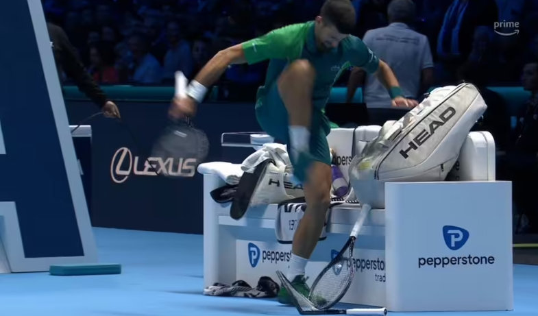 3세트 3번째 게임. 게임스코어 2-0으로 앞선 조코비치는 자신의 서비스 게임을 브레이크 당해 2-1로 추격을 허용했다. 1·2세트 모두 타이브레이크까지 가는 격전을 펼친 상황. 2세트를 패한 후 화를 내며 한차례 감정을 표출했던 조코비치는 이번엔 벤치로 돌아가 라켓 2자루를 부러뜨리는 것으로 스트레스를 풀었다.