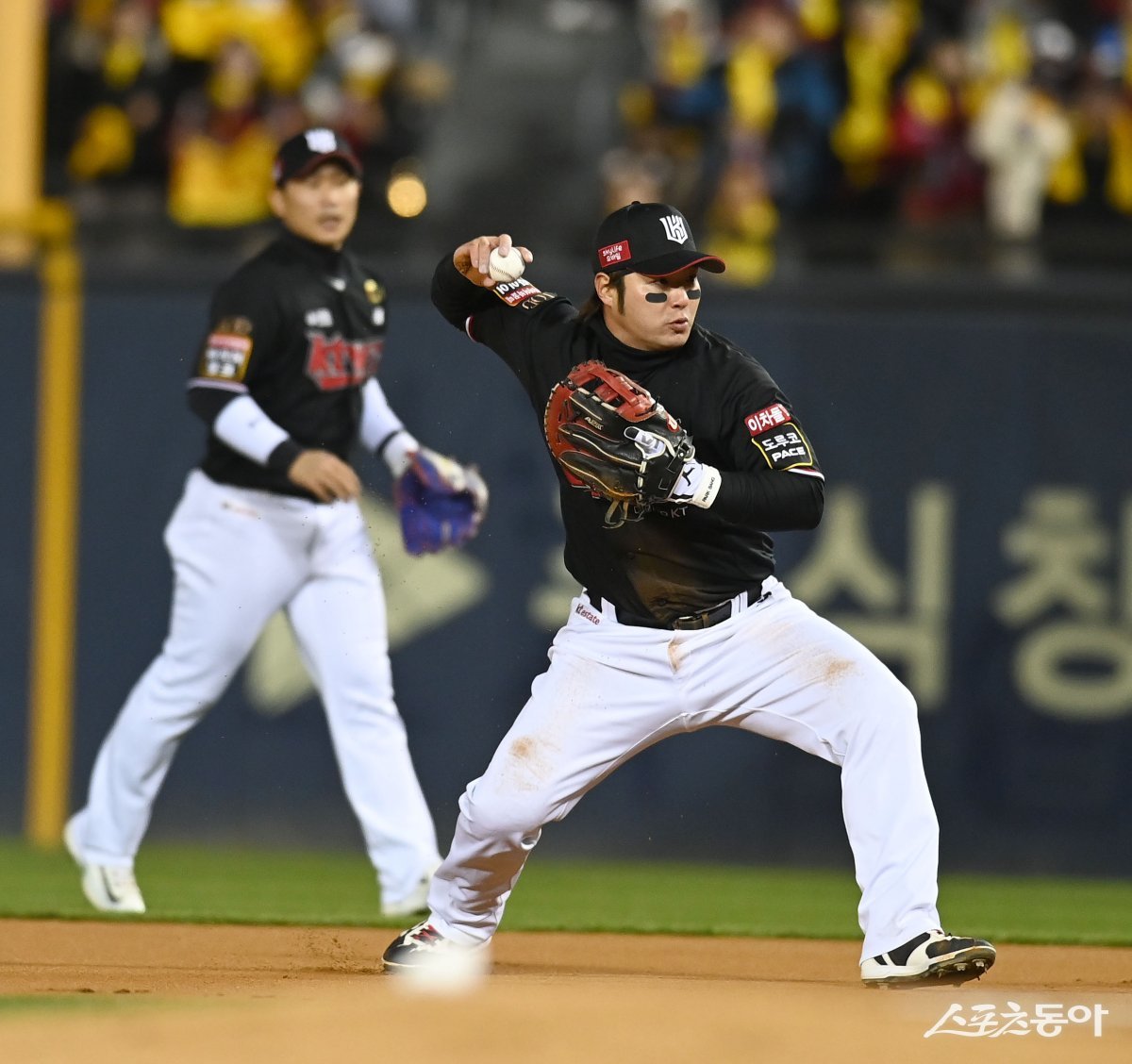 13일 서울 잠실야구장에서 ‘2023 신한은행 SOL KBO리그’ 포스트시즌 한국시리즈 5차전 KT 위즈와 LG 트윈스 경기가 열렸다. 1회말 무사 LG 내야 땅볼 때 KT 박병호가 송구 실책을 하고 있다. 잠실 | 김종원 기자 won@donga.com