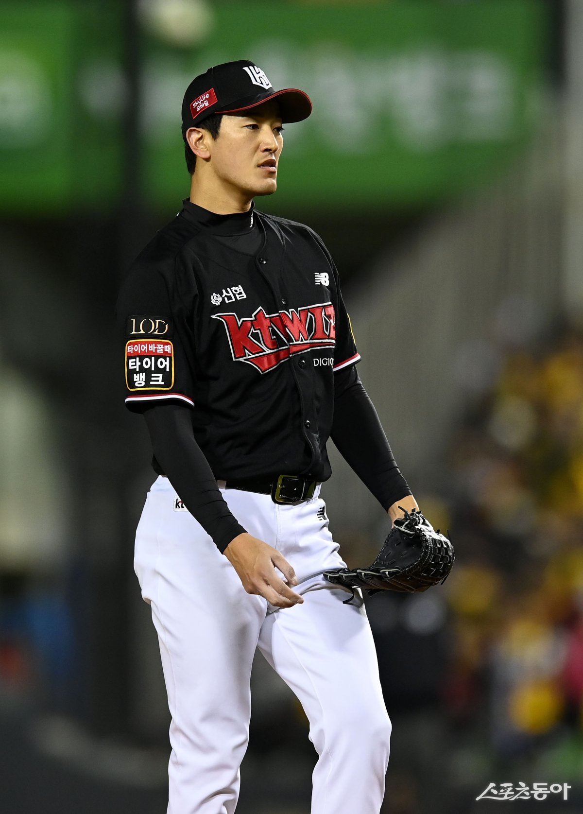 13일 서울 잠실야구장에서 ‘2023 신한은행 SOL KBO리그’ 포스트시즌 한국시리즈 5차전 KT 위즈와 LG 트윈스 경기가 열렸다. 선발 투수로 등판한 KT 고영표가 3회말 무사 1루 상황에서 볼넷을 허용한 후 아쉬워하고 있다.