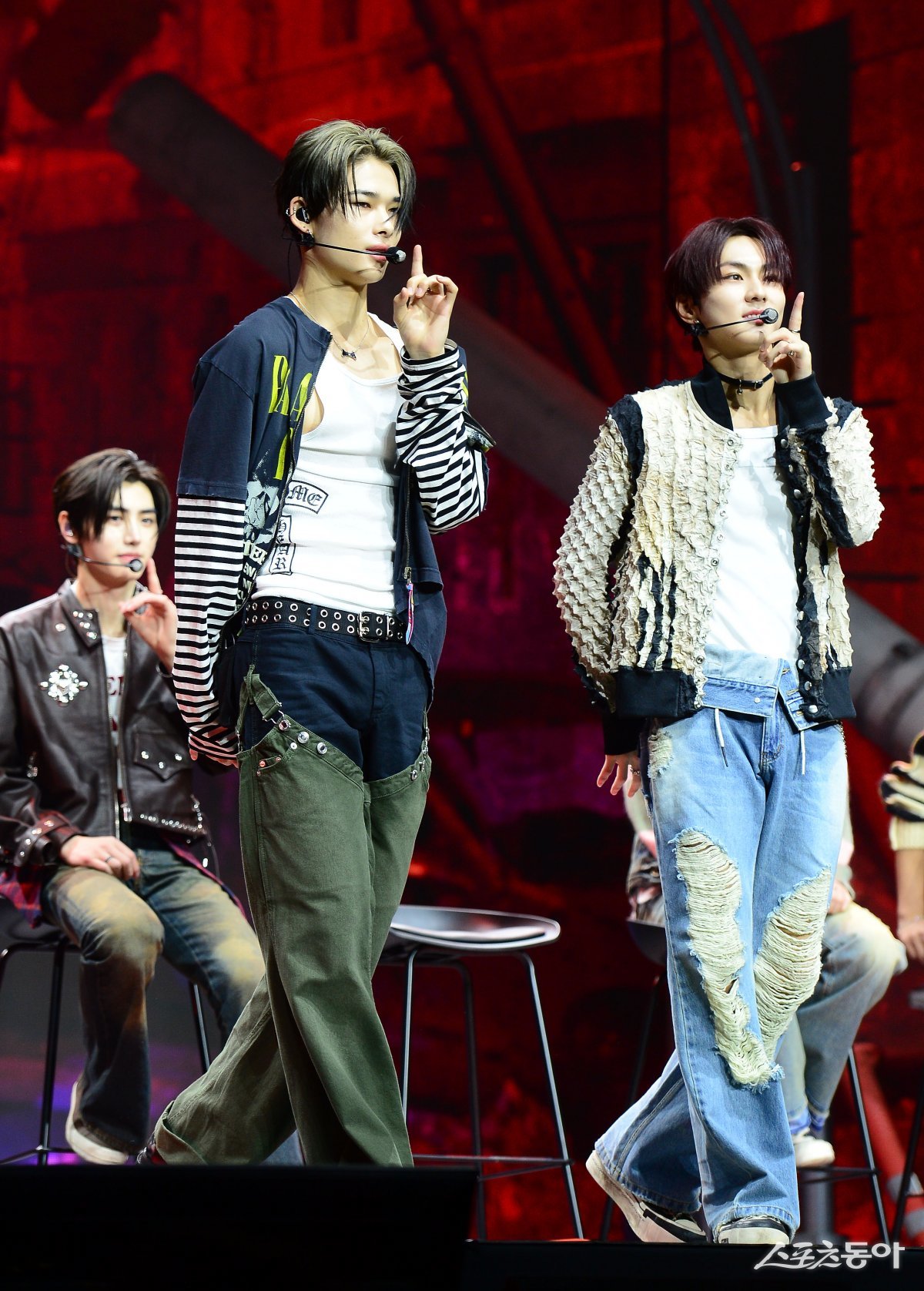 그룹 엔하이픈(ENHYPEN)이 16일 서울 광진구 예스24 라이브홀에서 열린 미니 5집 ‘ORANGE BLOOD’ 발매 쇼케이스에서 니키와 정원이 포인트 안무를 보이고 있다.