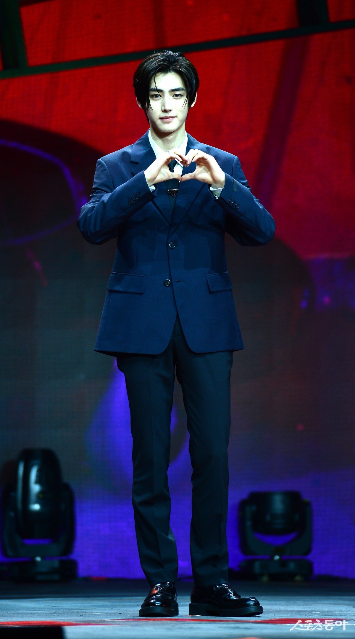 그룹 엔하이픈(ENHYPEN) 성훈이 16일 서울 광진구 예스24 라이브홀에서 열린 미니 5집 ‘ORANGE BLOOD’ 발매 쇼케이스에서 포토타임을 갖고 있다.