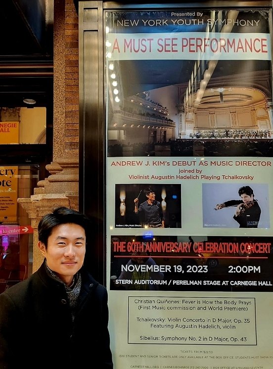 11월 19일(현지시간) 미국 뉴욕 카네기홀에서 열리는 뉴욕청소년심포니오케스트라(NYYS) 창립 60주년 기념 콘서트에서 김진홍(Andrew J. Kim) 음악감독이 지휘자로 첫 데뷔 무대를 갖는다.