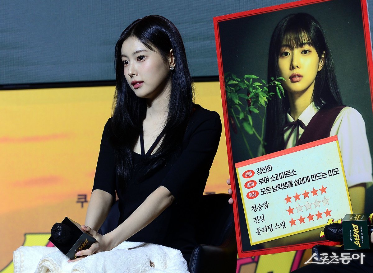 20일 서울 역삼동 조선 팰리스 강남 호텔에서 열린 쿠팡플레이 오리지널 드라마 ‘소년시대’ 제작발표회에 참석한 강혜원이 캐릭터를 설명하고 있다.