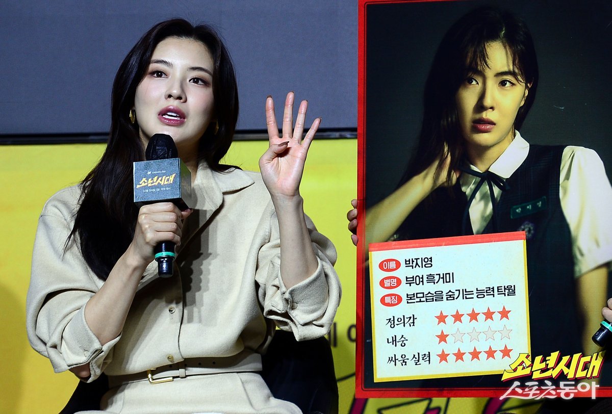 20일 서울 역삼동 조선 팰리스 강남 호텔에서 열린 쿠팡플레이 오리지널 드라마 ‘소년시대’ 제작발표회에 참석한 이선빈이 캐릭터를 설명하고 있다.