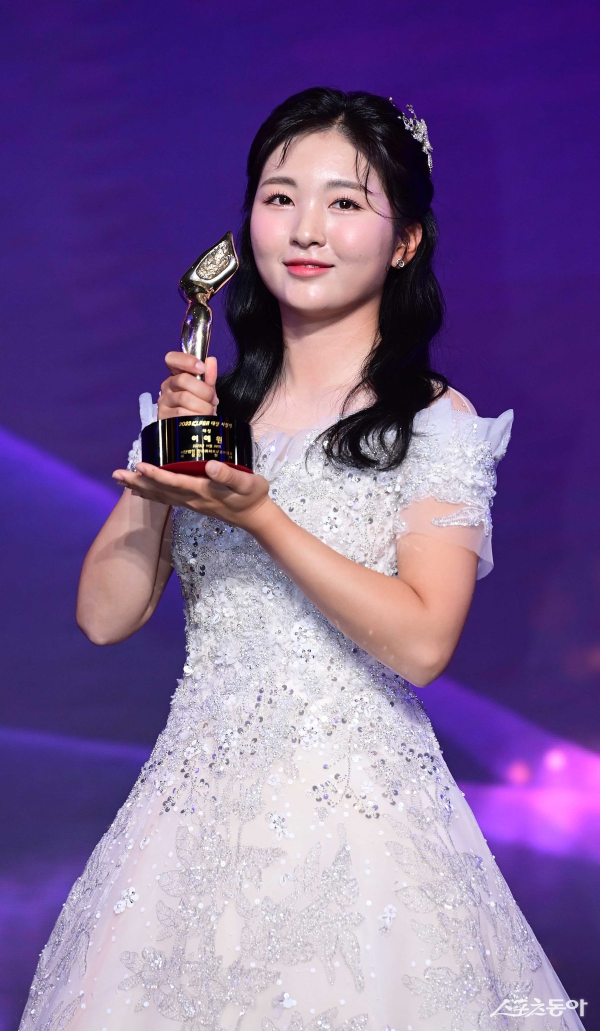 20일 서울 강남구 삼성동 그랜드인터컨티넨탈 서울파르나스에서 열린 ‘2023 KLPGA 대상 시상식’에서 대상을 비롯한 3관왕을 차지한 이예원이 기념 촬영을 하고 있다.