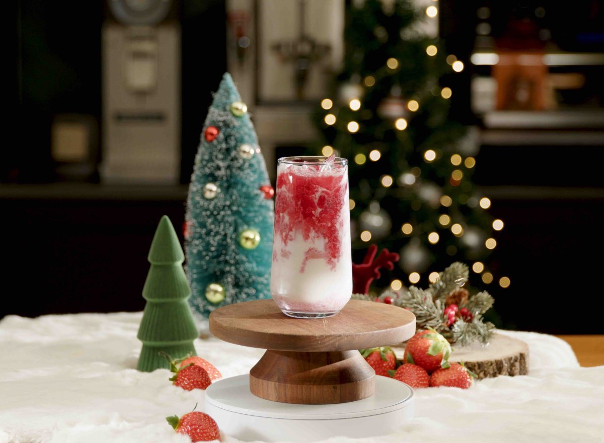 부드러운 흰 우유 위에 입안 가득 씹히는 상큼한 딸기 과육이 층을 이뤄 산타를 연상시키는 비주얼이 눈길을 끈다. 2019년 첫 출시 이후 봄 스테디셀러 음료로 자리 잡아 누적 판매 530만 잔을 돌파했으며 올 봄에만 200만 잔 이상 판매될 정도로 인기를 얻었다.