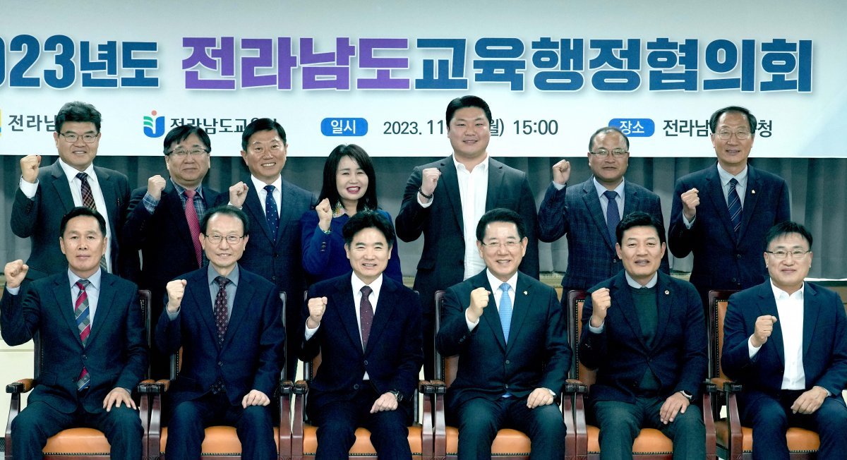 전라남도와 전남도교육청은 지난 20일 전남도교육청 상황실에서 ‘2023년 전라남도 교육행정협의회’를 열어 교육발전특구 시범지역 선정 등 교육 현안 문제 공동 해결을 통한 전남 교육 발전을 위해 머리를 맞댔다.김영록 지사, “지역소멸 극복…전남교육 대전환 최선”