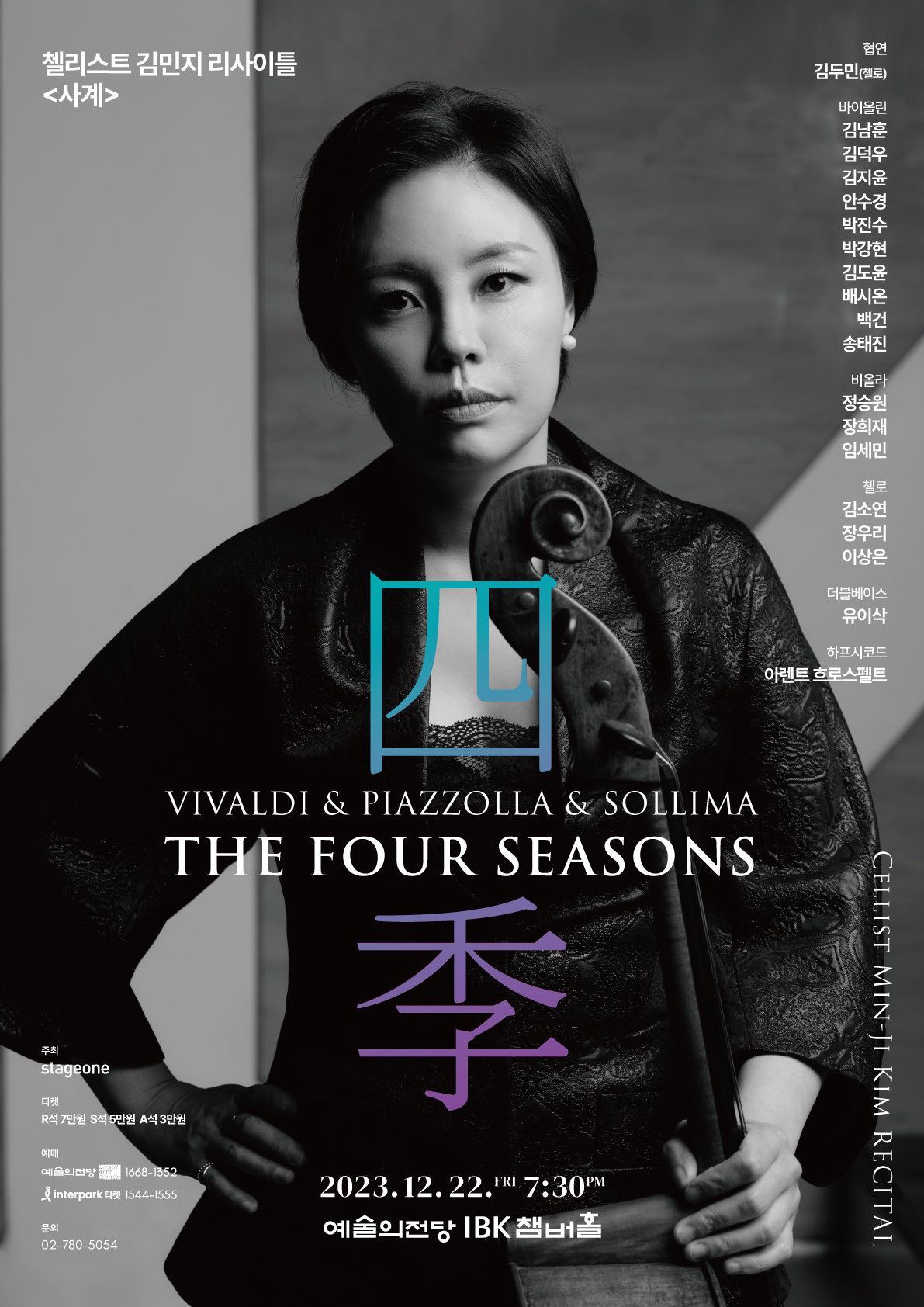 서울대 음대 교수로 재직 중인 첼리스트 김민지가 12월 22일 (금) 오후 7시 30분 서울서초동 예술의전당 IBK챔버홀에서 리사이틀을 개최한다. 2021년 C.P.E 바흐 협주곡 전곡 연주, 2022년 J.S 바흐의 무반주 첼로 모음곡 전곡 연주를 개최하며 음악계의 주목을 끌었던 김민지가 이번에는 바로크 시대를 대표하는 작곡가 비발디의 <사계>와 탱고의 거장 피아졸라의 <사계>를 한 자리에 감상할 수 있는 무대를 마련했다.