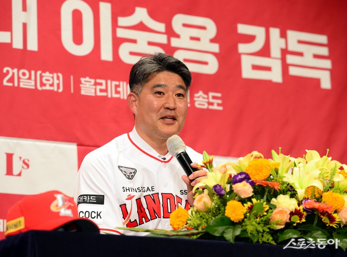 21일 인천 연수구 홀리데이인 인천 송도에서 SSG랜더스 제9대 이숭용 감독 취임식이 열렸다. SSG 이숭용 신임 감독이 취임 소감을 밝히고 있다.