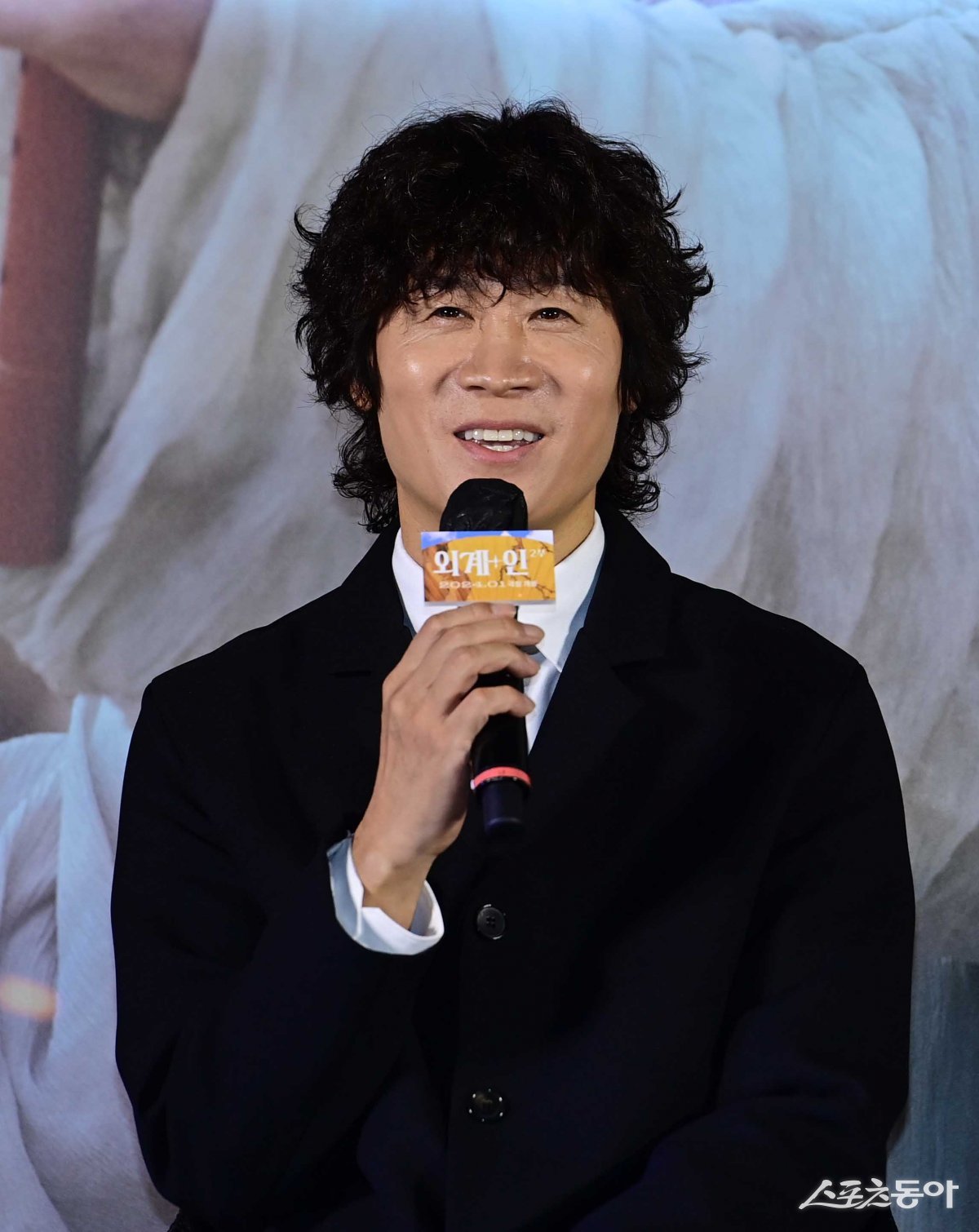 배우 진선규가 22일 서울 용산구 CGV용산아이파크몰점에서 열린 영화 ‘외계+인’ 2부 제작보고회에서 인사말을 하고 있다.