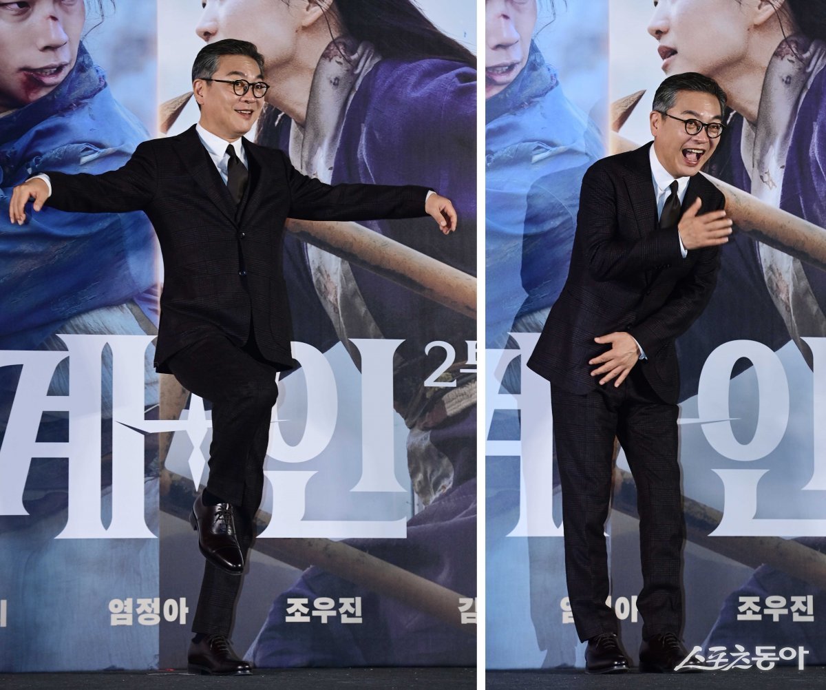 배우 김의성이 22일 서울 용산구 CGV용산아이파크몰점에서 열린 영화 ‘외계+인’ 2부 제작보고회에서 포즈를 취하고 있다.