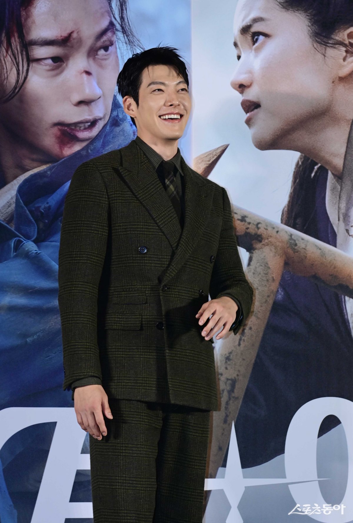 배우 김우빈이 22일 서울 용산구 CGV용산아이파크몰점에서 열린 영화 ‘외계+인’ 2부 제작보고회에서 포즈를 취하고 있다.