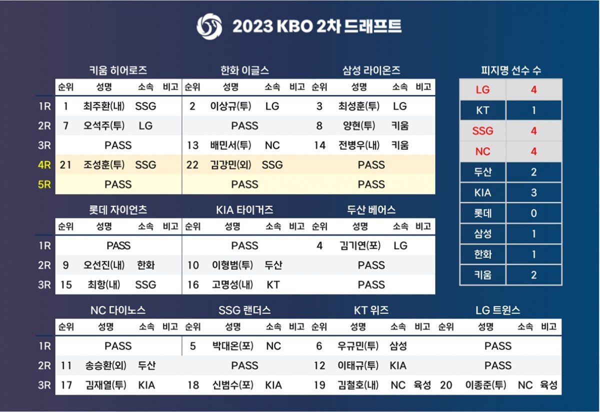 2011년 처음 도입됐던 KBO리그 2차 드래프트는 2019년까지 격년제로 5차례 진행된 뒤 2021년 10월 26일 KBO 이사회에서 퓨처스(2군) 프리에이전트(FA) 제도 시행을 승인함에 따라 폐지됐다. 그러나 퓨처스 FA를 통한 이적이 활발히 이뤄지지 않으면서 올해 7월 KBO 이사회가 2차 드래프트 부활을 결정했다. 23일 2019년 이후 4년 만에 2차 드래프트가 다시 열렸다.