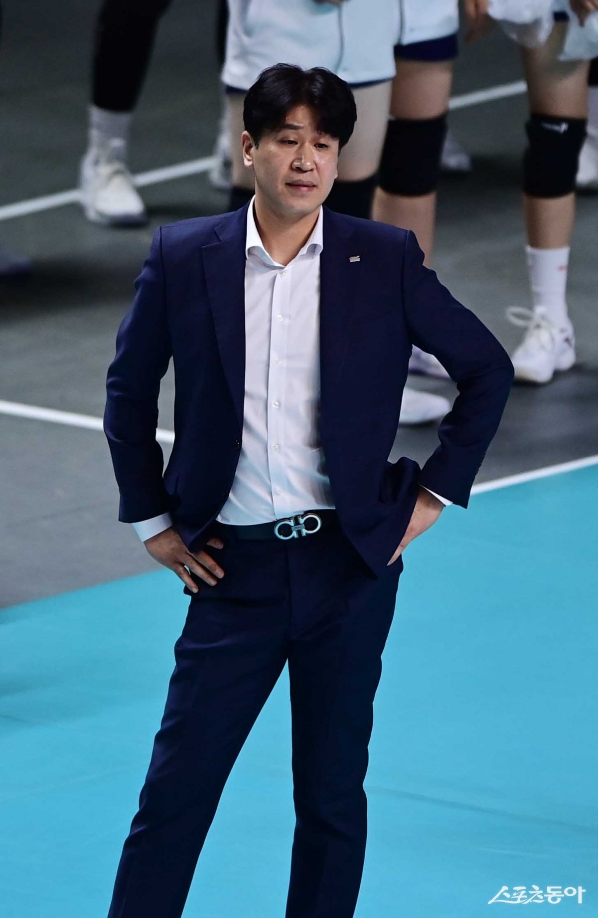 22일 서울 장충체육관에서 열린 ‘도드람 2023-2024 V리그’ 여자부 서울 GS칼텍스와 김천 한국도로공사의 경기에서 역전을 허용한 한국도로공사 김종민 감독이 아쉬워하고 있다.