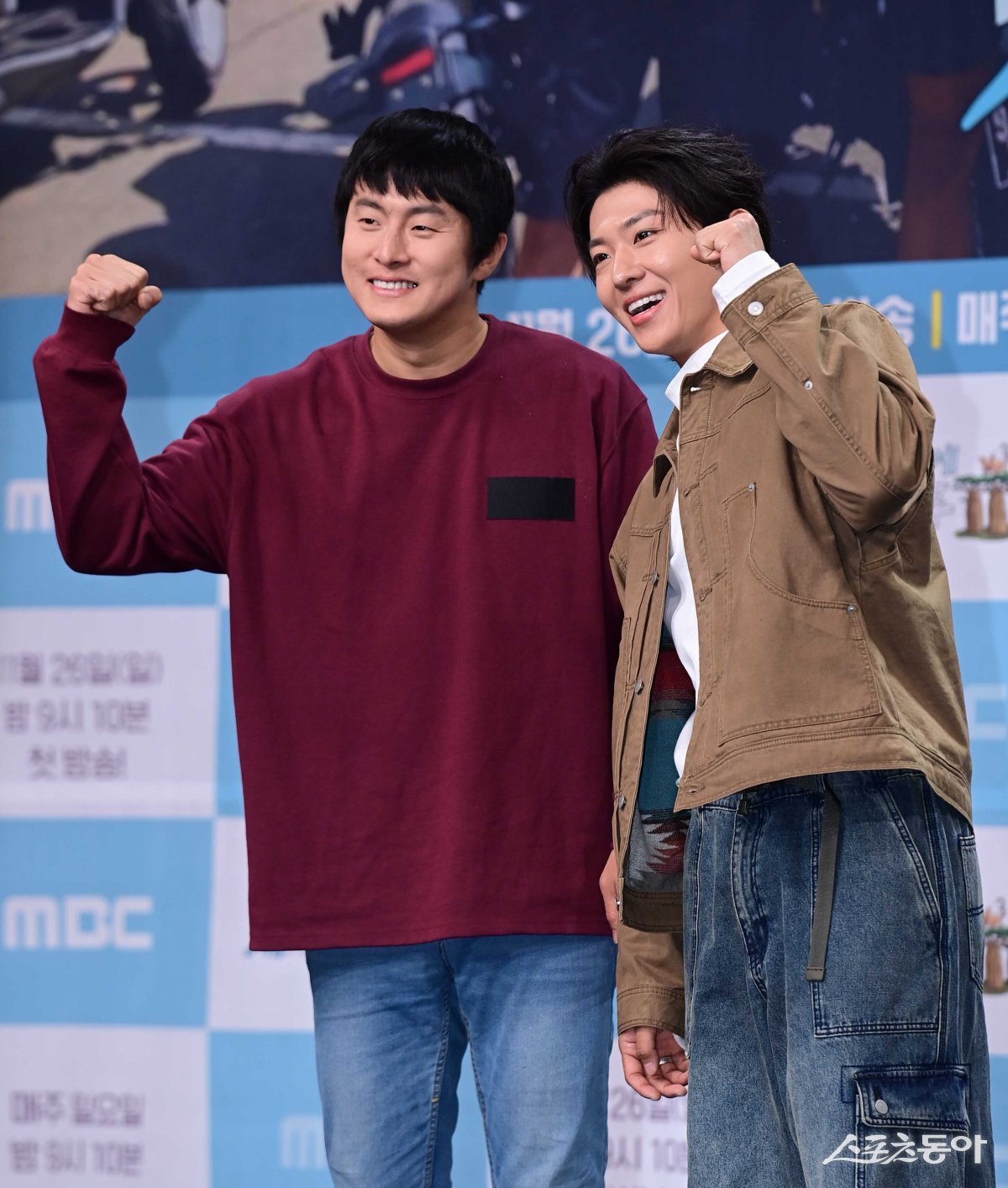 방송인 기안84, 덱스가 23일 서울 마포구 상암동 MBC본사 골든마우스홀에서 열린 MBC 예능프로그램 ‘태어난 김에 세계일주3’ 제작발표회에서 포즈를 취하고 있다.