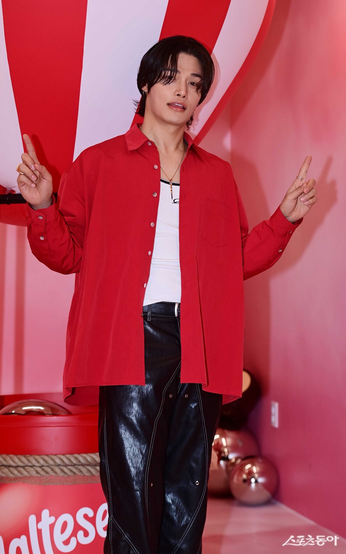 모델 정혁이 24일 서울 성동구 성수동 한 팝업스토어에서 열린 글로벌 초콜릿 브랜드의 신제품 출시 기념 스페셜 팝업에서 포즈를 취하고 있다.