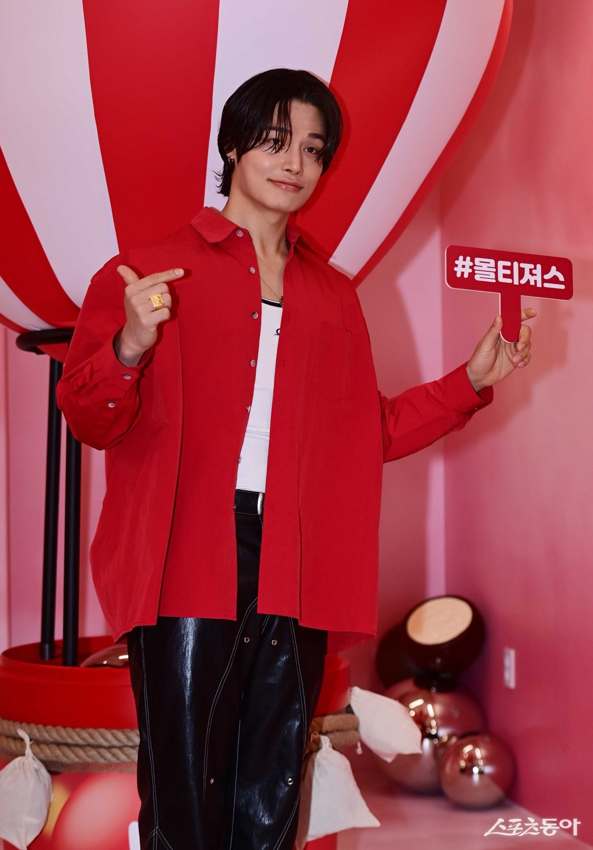 모델 정혁이 24일 서울 성동구 성수동 한 팝업스토어에서 열린 글로벌 초콜릿 브랜드의 신제품 출시 기념 스페셜 팝업에서 포즈를 취하고 있다.