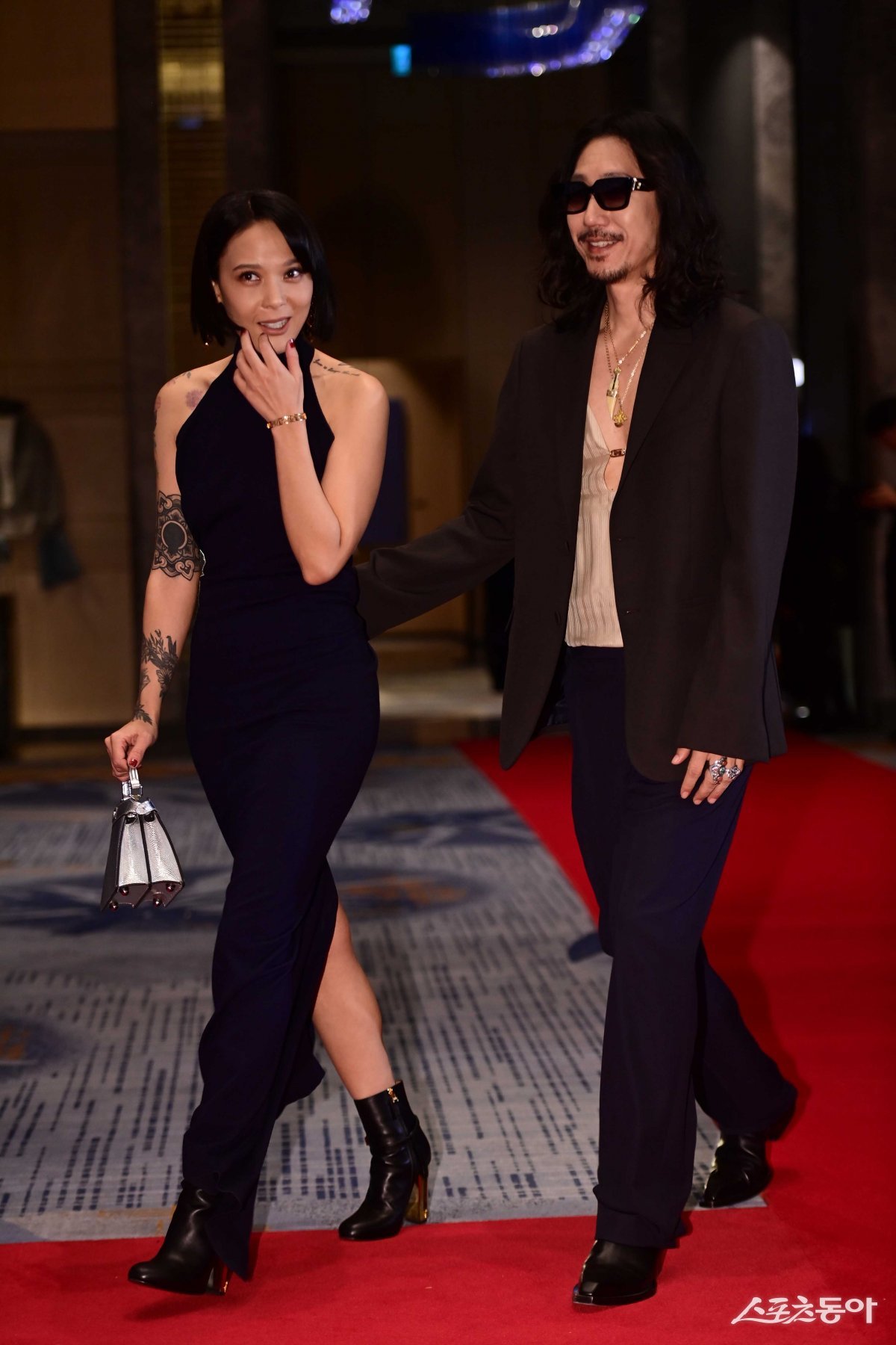 윤미래, 타이거JK 부부가 24일 서울 종로구 당주동 포시즌스호텔에서 열린 더블유 코리아 ‘제18회 유방암 인식 향상 캠페인 자선 행사‘ 개최 포토월에 입장하고 있다.