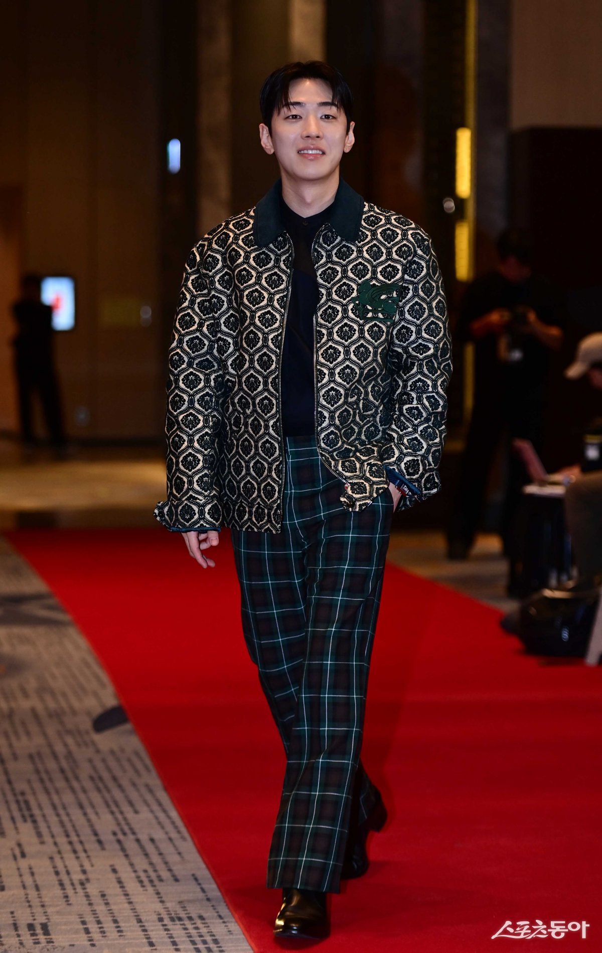 가수 그레이가 24일 서울 종로구 당주동 포시즌스호텔에서 열린 더블유 코리아 ‘제18회 유방암 인식 향상 캠페인 자선 행사 개최 포토월에 입장하고 있다.