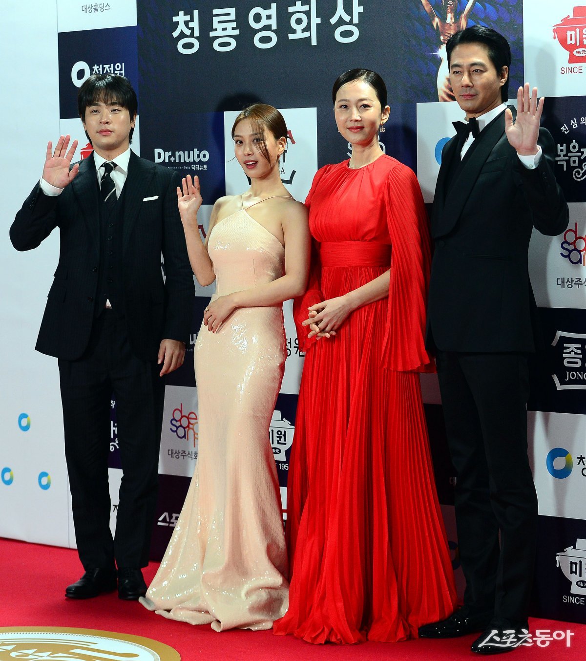 배우 박정민, 고민시, 염정아, 조인성이 24일 서울 영등포구 여의도 KBS홀에서 열린 ‘제44회 청룡영화상’ 레드카펫 행사에 참석해 포즈를 취하고 있다.